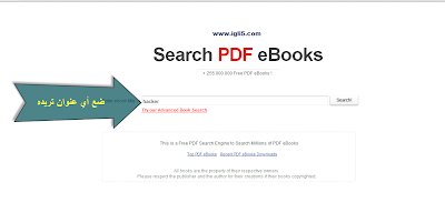 الموقع يدعى search pdf books ، وهو عبارة عن مكتبة ضخمة للكتب الإلكترونية يضم أكثر من 255 مليون كتاب للتحميل مجانا ، حيث يمكنك البحث عن عنوان الكتاب الإلكتروني الذي تريده ، حتى يستعرض لك الموقع لائحة كبيرة جدا وبلغات مختلفة لما بحثت عنه ، تقوم باختيار واحدة من هذه الكتب و تقوم بتحميله أو قراءته على الموقع مباشرة .